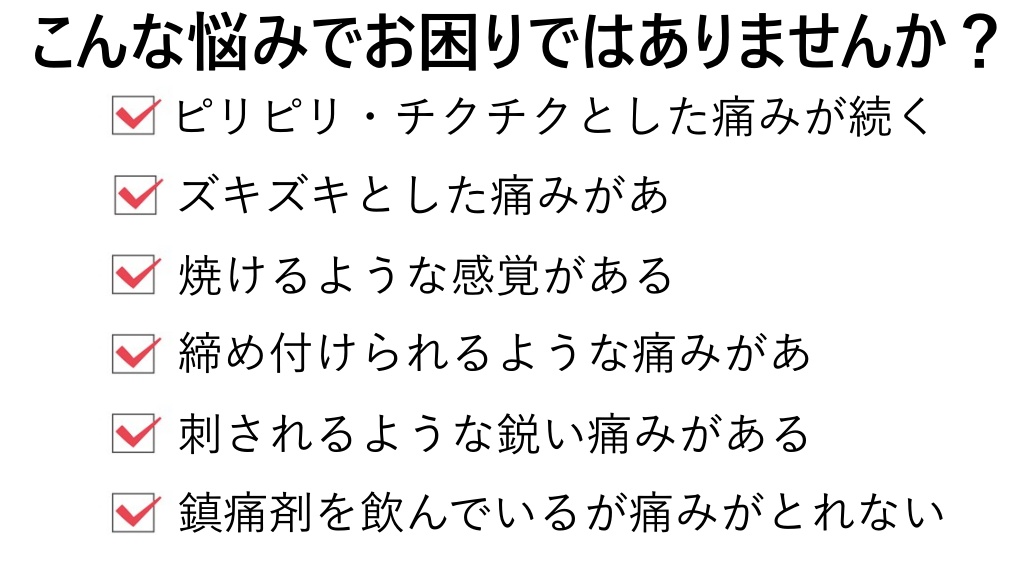 帯状疱疹後神経痛にお悩みなら、どうぞ私たちにお任せください。
